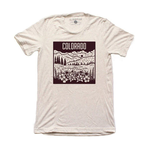 $28.00Colorado Mountain Tee in oatmeal is a screen printed t-shirt with a dark plum water-based ink. With a retail fit, this incredibly soft t-shirt is ...