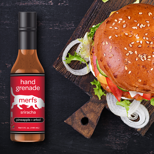 $8.00| /Forget the boring stuff! Merfs Hand Grenade Sriracha is a sriracha on steroids. This award-winning sauce packs a fiery punch from arbol chilis, bal...